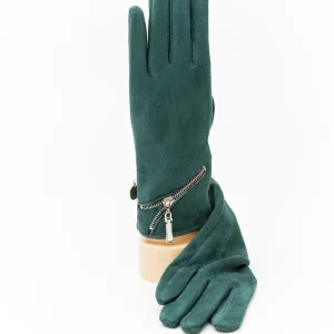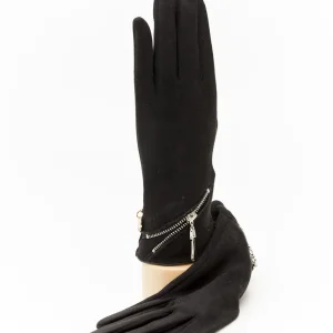 Γάντι γυναικείο με πλάγιο μεταλλικό φερμουάρ