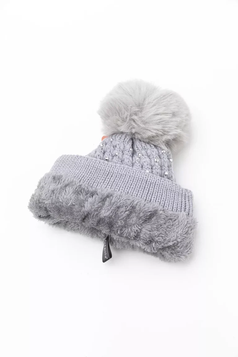 Γάντι γυναικείο με γούνινο φινίρισμα και φουντάκια.