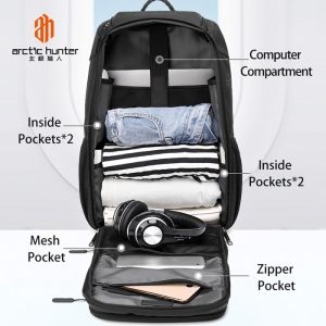 ARCTIC HUNTER τσάντα πλάτης B00388 με θήκη laptop 15.6″, USB, 27L, μαύρη