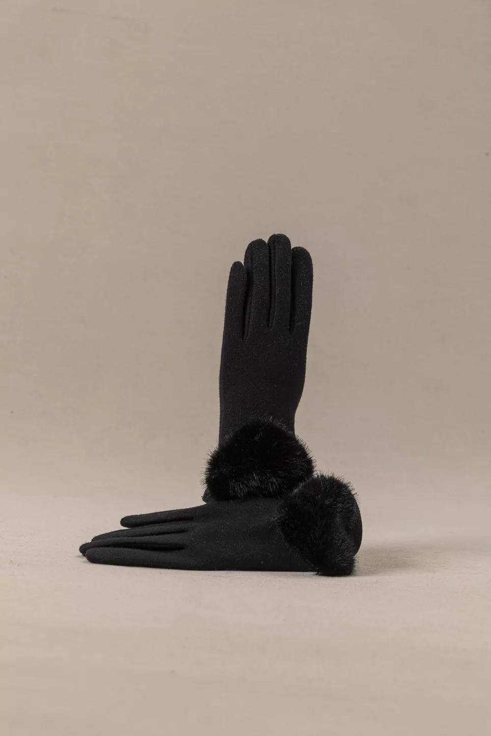 Κομψά και ζεστά γυναικεία γάντια με απαλή αφή και πολυτελή λεπτομέρεια με οικολογική γούνα σε σχήμα puffy καρδιάς στον καρπό.