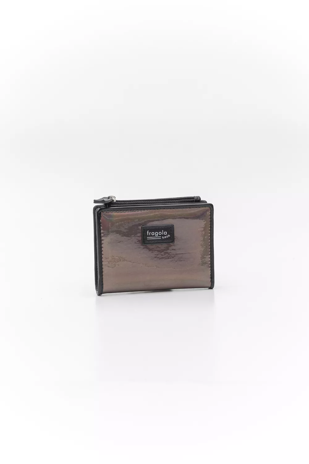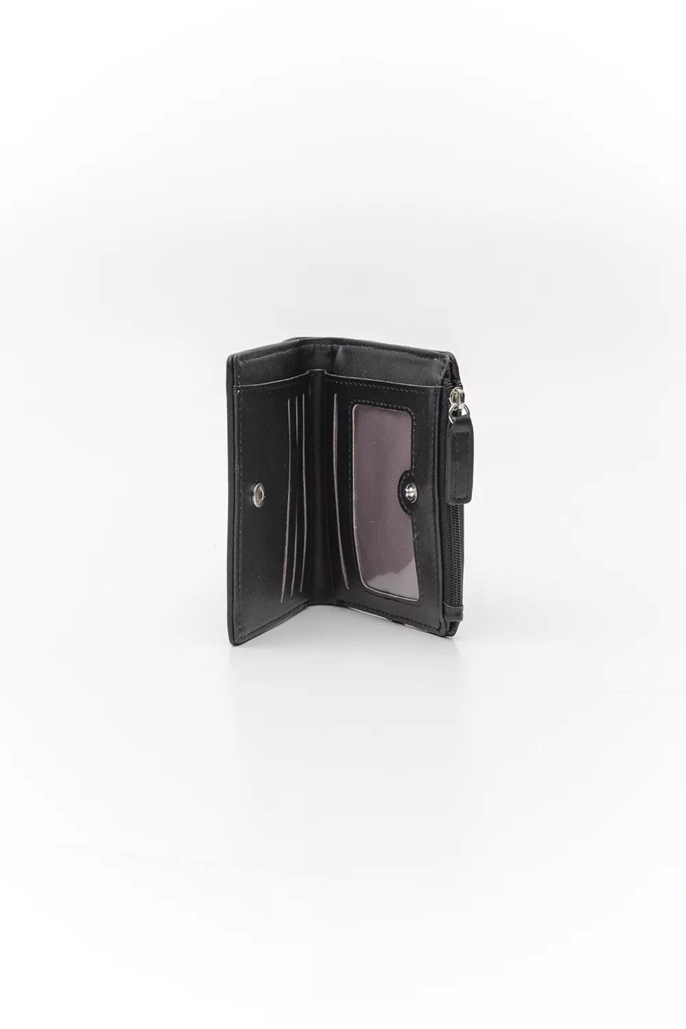 Μικρό πορτοφόλι που κλείνει με κουμπάκι. Στο εσωτερικό υπάρχουν πολλές θήκες για κάρτες και ξεχωριστή θήκη με φερμουάρ.