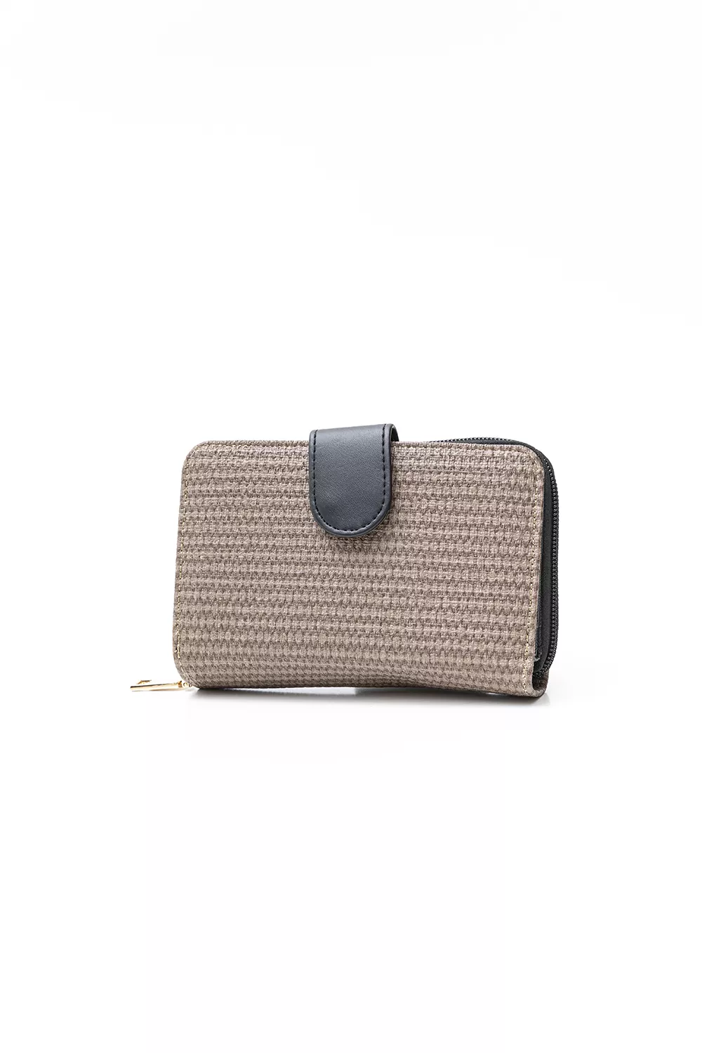 Πορτοφόλι διπλά ανοιγόμενο. Από τη μια πλευρά διαθέτει θέση με φυσούνα και κλείνει με φερμουάρ. Από την άλλη διαθέτει θέση για χαρτονομίσματα, ταυτότητα, δίπλωμα και πολλές θέσεις για κάρτες. Κλείνει με γλωσσάκι που έχει σούστα.
