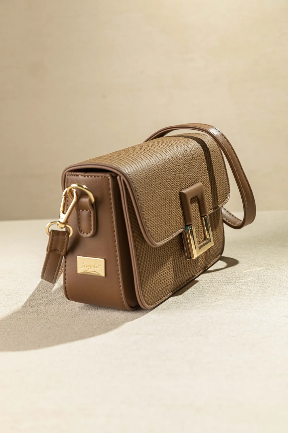 Τσαντάκι ώμου με καπάκι με τετράγωνη αγκράφα