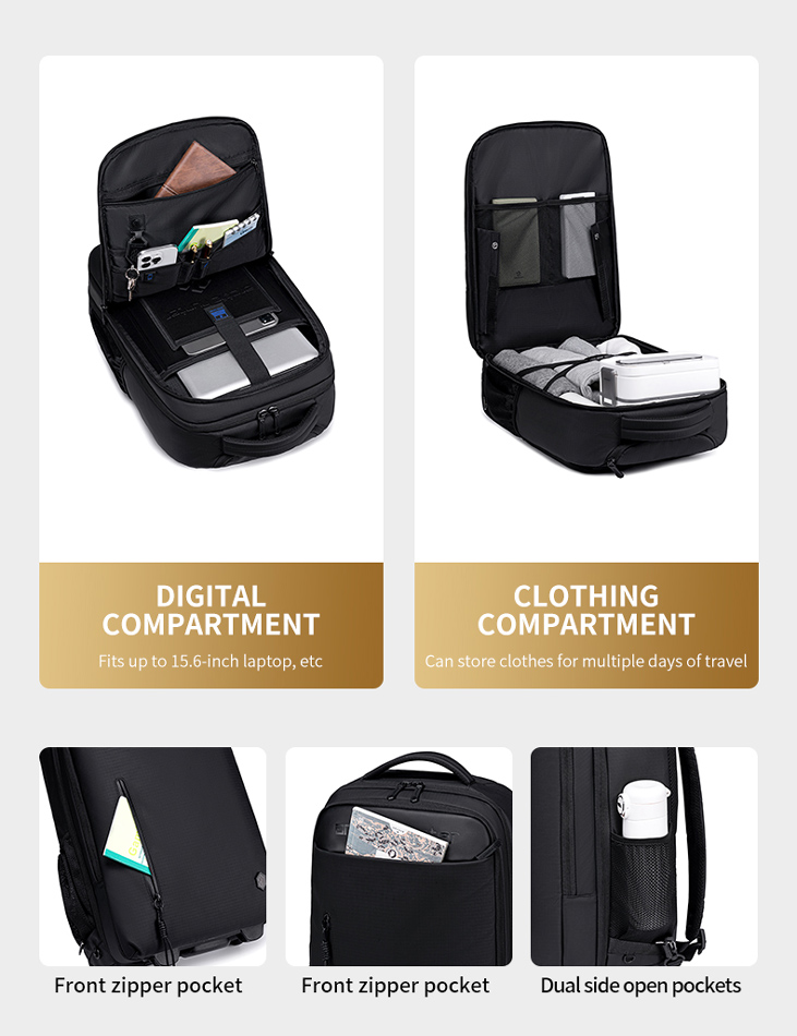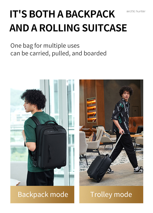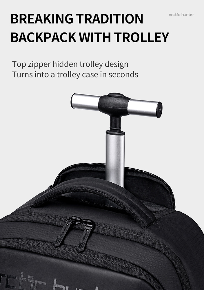 ARCTIC HUNTER τσάντα ταξιδίου LG00657-1 με θήκη laptop 15.6″, τροχήλατη, 27L, μαύρη