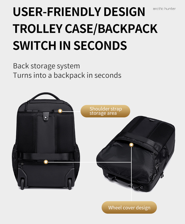 -τροχήλατη τσάντα πλάτης, με πτυσσόμενη λαβή η οποία μπορεί να συμπτυχθεί πλήρως, εντός της τσάντας