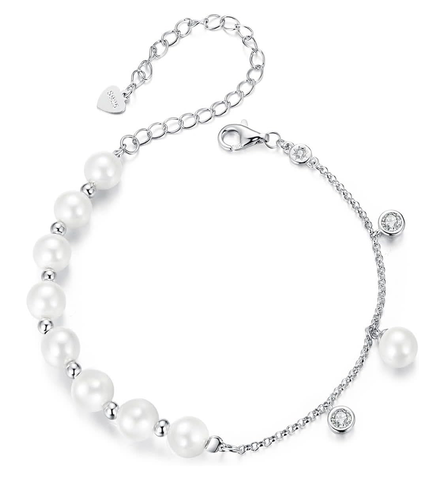 BAMOER βραχιόλι BSB189 με πέρλες & κυβική ζιρκόνια, ασήμι 925, ασημί