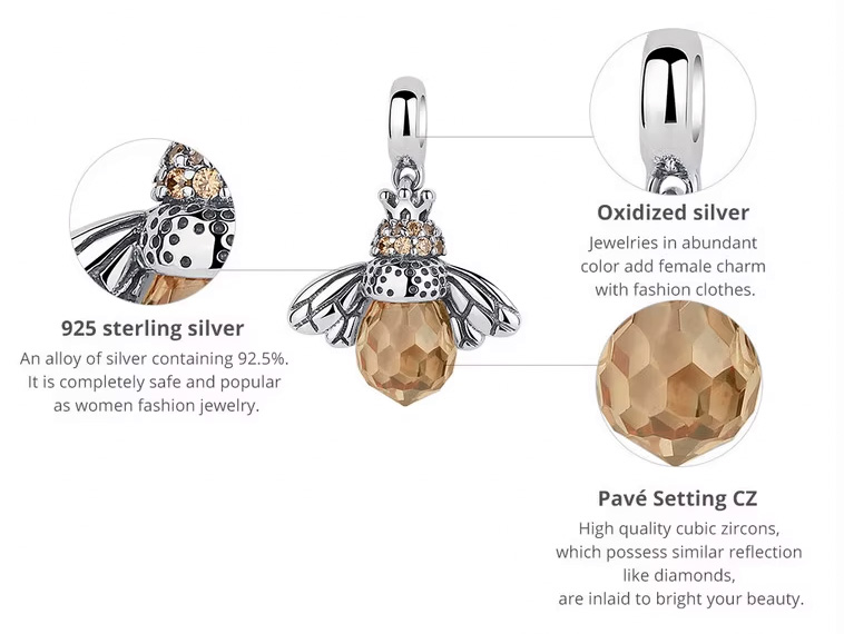 BAMOER κολιέ μέλισσα SCC035+SCA010-45 με κυβική ζιρκόνια, ασήμι 925, ασημί