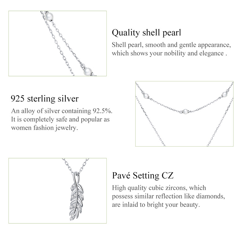 BAMOER κολιέ BSN208 δυο σειρών, με πέρλες, ασήμι 925, ασημί