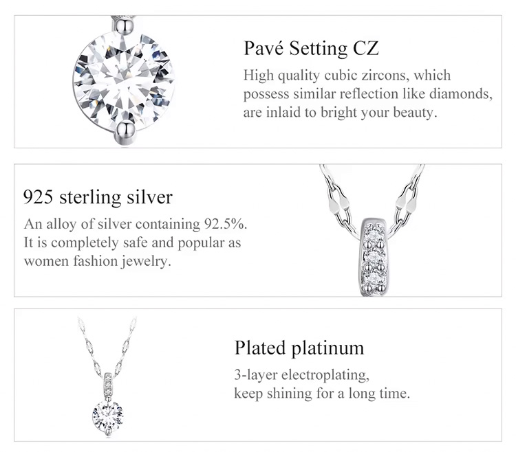 BAMOER κολιέ BSN273 με κυβική ζιρκόνια, ασήμι 925, ασημί
