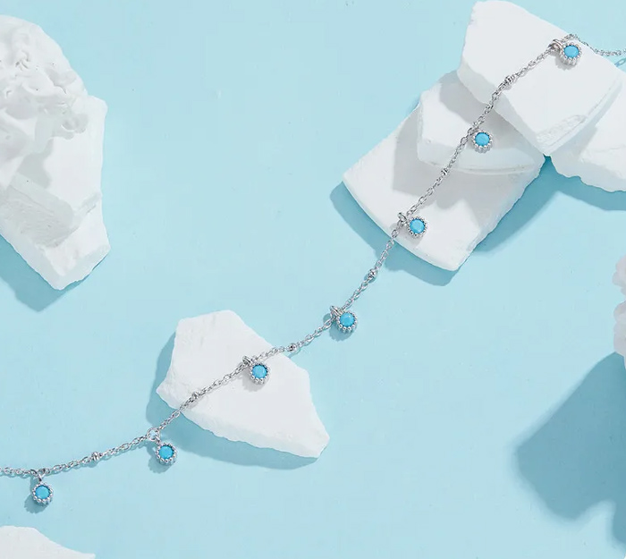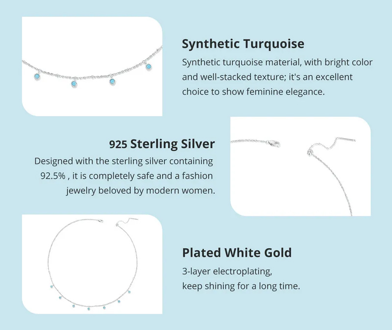 Εντυπωσιακό κολιέ Bamoer, με ιδιαίτερο και μοναδικό design. Διαθέτει ασημί αλυσίδα, διακοσμημένη με συνθετικές τιρκουάζ χάντρες.
