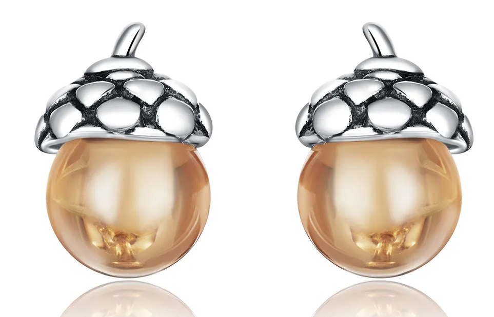 Σκουλαρίκια καρφωτά με σχήμα κουκουνάρι, κατασκευασμένα από οξειδωμένο ασήμι 925, διακοσμημένα με αστραφτερή κυβική ζιρκόνια καφέ χρώματος.