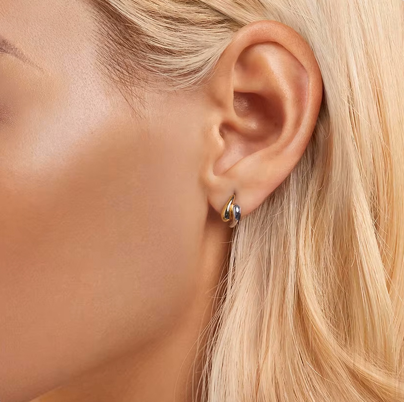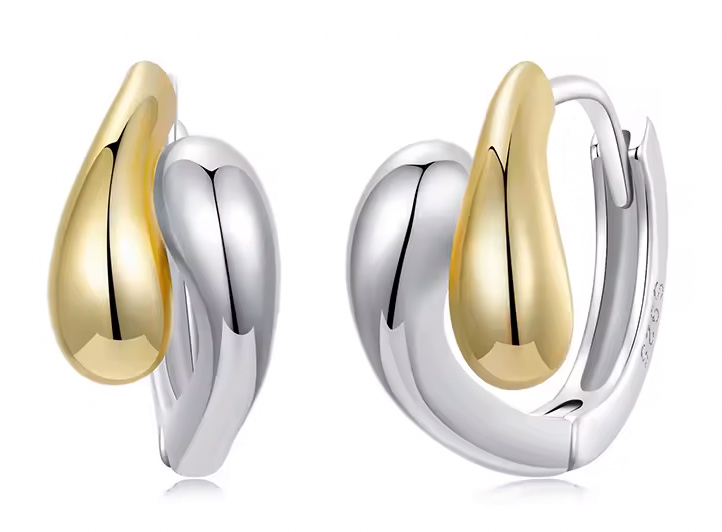 Μοντέρνα σκουλαρίκια κρίκοι Bamoer, κατασκευασμένα από ασήμι 925 και με επιχρυσωμένο φινίρισμα.