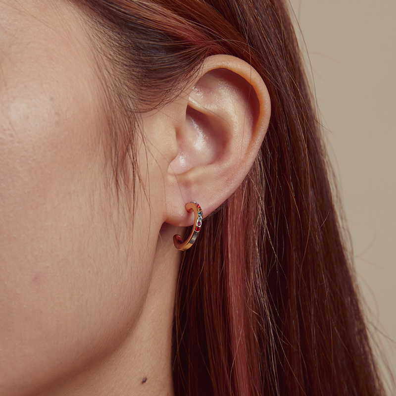 Σκουλαρίκια κρίκος Roxxani, διακοσμημένα με αστραφτερή κυβική ζιρκόνια σε εντυπωσιακά χρώματα που προσφέρει εξαιρετική λάμψη στο κόσμημα.